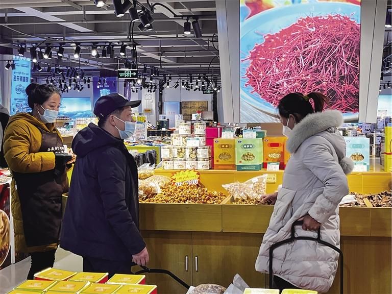 1月9日,記者來(lái)到西藏特產(chǎn)倉(cāng)儲(chǔ)超市(乃倉(cāng)店)進(jìn)行實(shí)地走訪。走進(jìn)超市,牦牛肉干、藏紅花、藏香豬肉、酥油茶、靈芝孢子粉等數(shù)百種西藏特產(chǎn)讓人眼花繚亂。雖是工作日,但前來(lái)購(gòu)買特產(chǎn)的市民絡(luò)繹不絕。“馬上過(guò)年了,想挑選一些西藏特產(chǎn)帶回去。”前來(lái)購(gòu)買特產(chǎn)的李女士說(shuō),“今天主要買了西藏本地產(chǎn)的蟲草酒和藏蜜,送長(zhǎng)輩很合適。”
